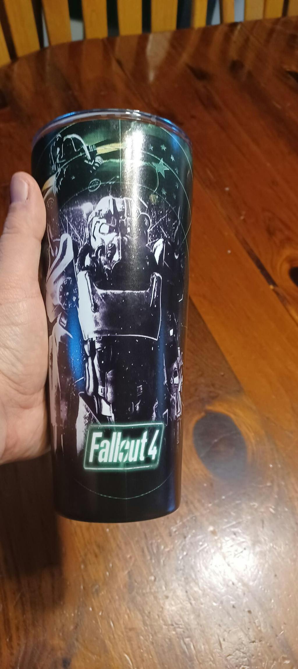 I was very happy with the 30oz fallout tumbler! The design is excellent and the lid stays on securely. Perfectly holds one small pot of coffee or two cans of soda with ice.